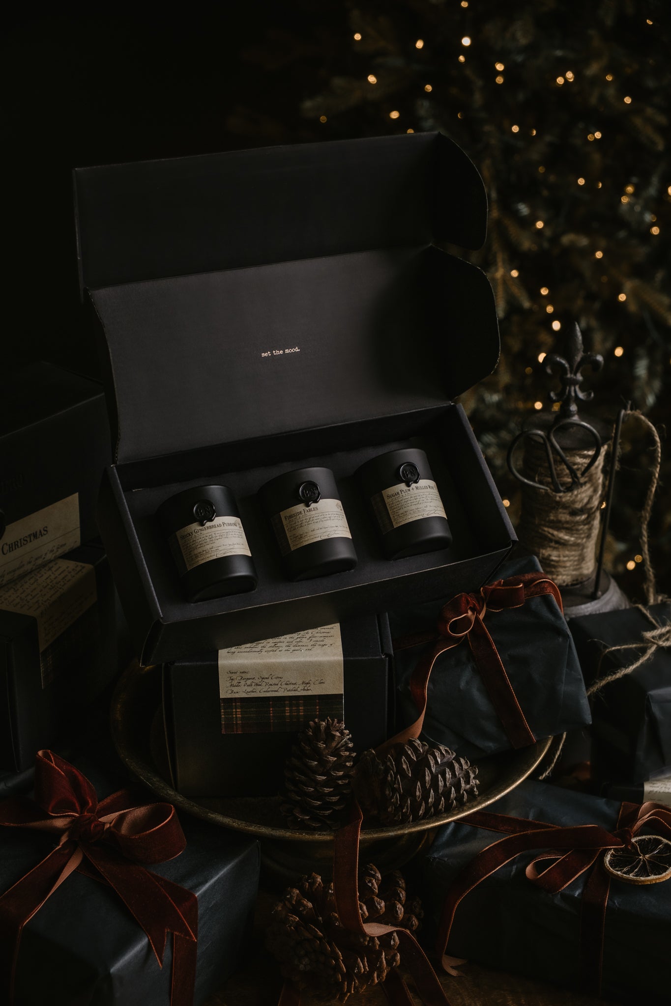Can't decide which festive scent to choose? Why not indulge in all three! Experience the decadent aroma of Sticky Gingerbread Pudding, the smoky warmth of Fireside Fables, and the sweet sophistication of Sugar Plum + Mulled Wine, Each thoughtfully crafted to evoke the most cherished moments leading up to, during, and after Christmas Day.