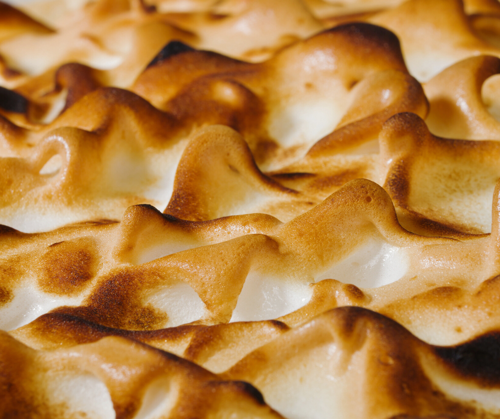Torched meringue has a light, airy aroma with sweet, sugary notes complemented by a hint of caramelisation from the toasting.